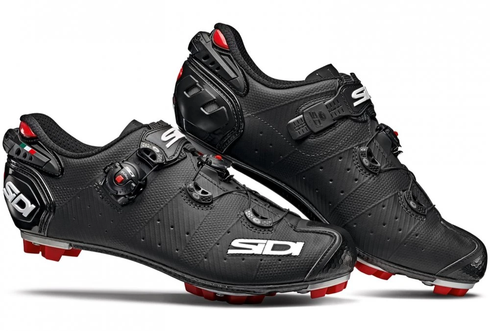 Professional racing shoes with carbon sole, unique patented Tecno 3 fastening system and retractable heel. Removable Sidi SRS sole system.
